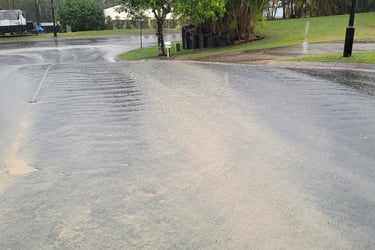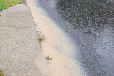 Council's contractor emptied the polluted retention basin into a stormwater pit and washed other pollution on the street and footpaths into the creek!!!