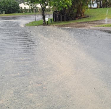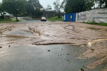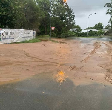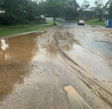 Videos and photos below show the runoff entering Viola Place then running into and along Dianella Court.