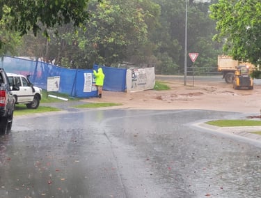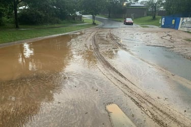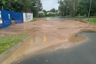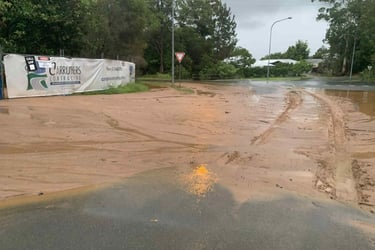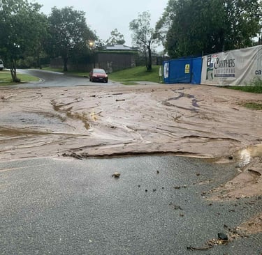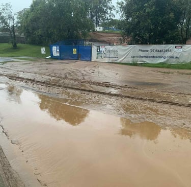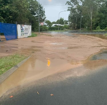 fourth time in 44 days construction site stormwater pollutants and debris flowed into creek and partly blocked roads.