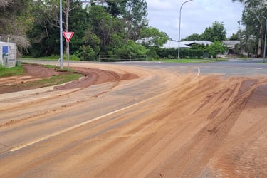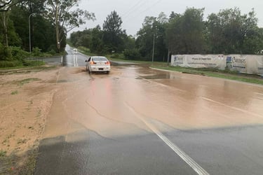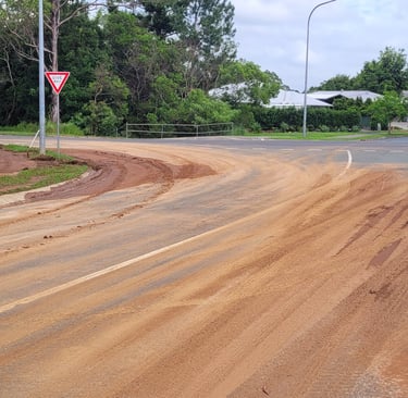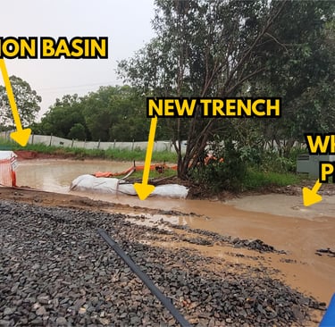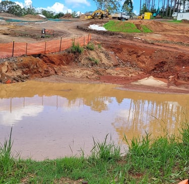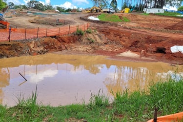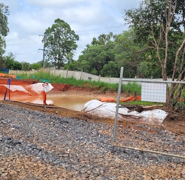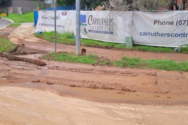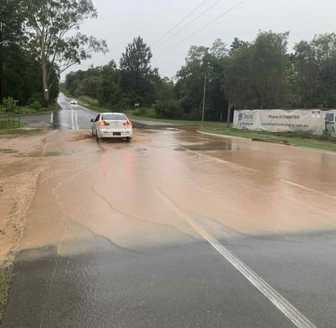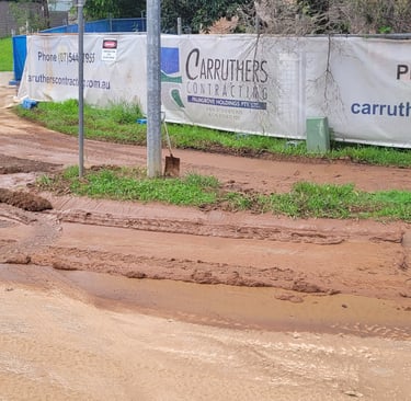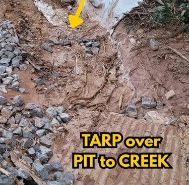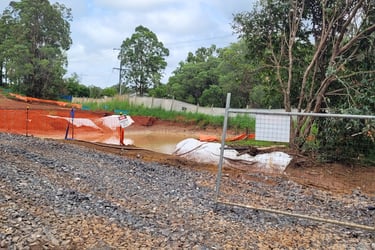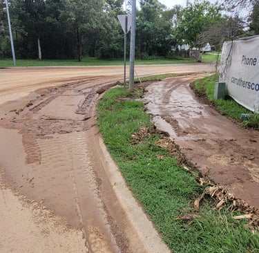 Directing muddy stormwater releases from site to the creek fails to prevent road flooding!