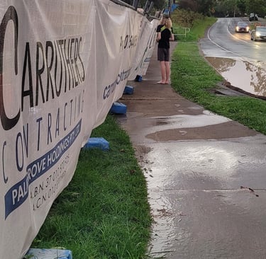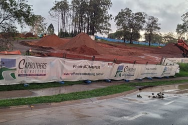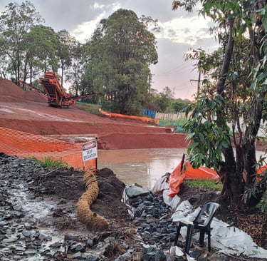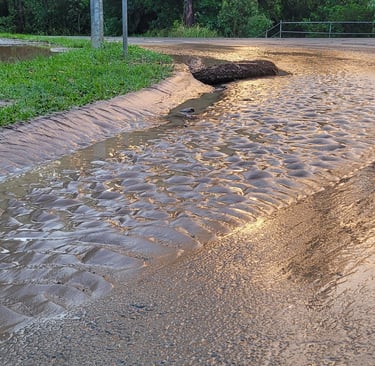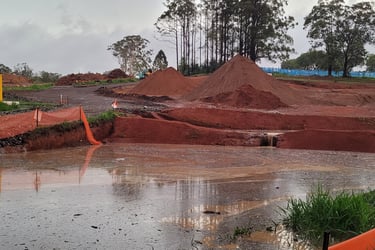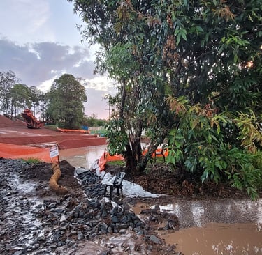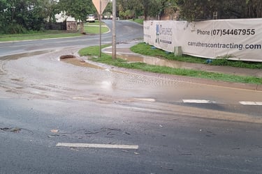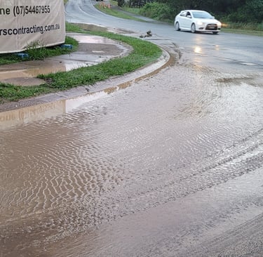 Inadequate stormwater retention capacity on the Carruthers Contracting - Noosa Council 64 Lake Macdonald Drive site caused polluted stormwater to break out on Saturday 24 November 2025 for the third time in as many weeks. Construction site pollutants and debris flowed into the local creek system and partly blocked local roads. Take that Noosa Biosphere!!!
