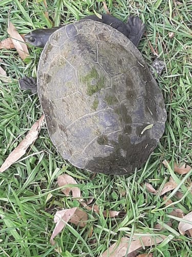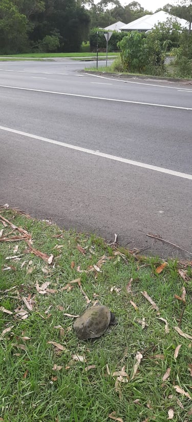 This turtle was rescued trying to cross Lake Macdonald Drive two days after the 24 November stormwater pollution.